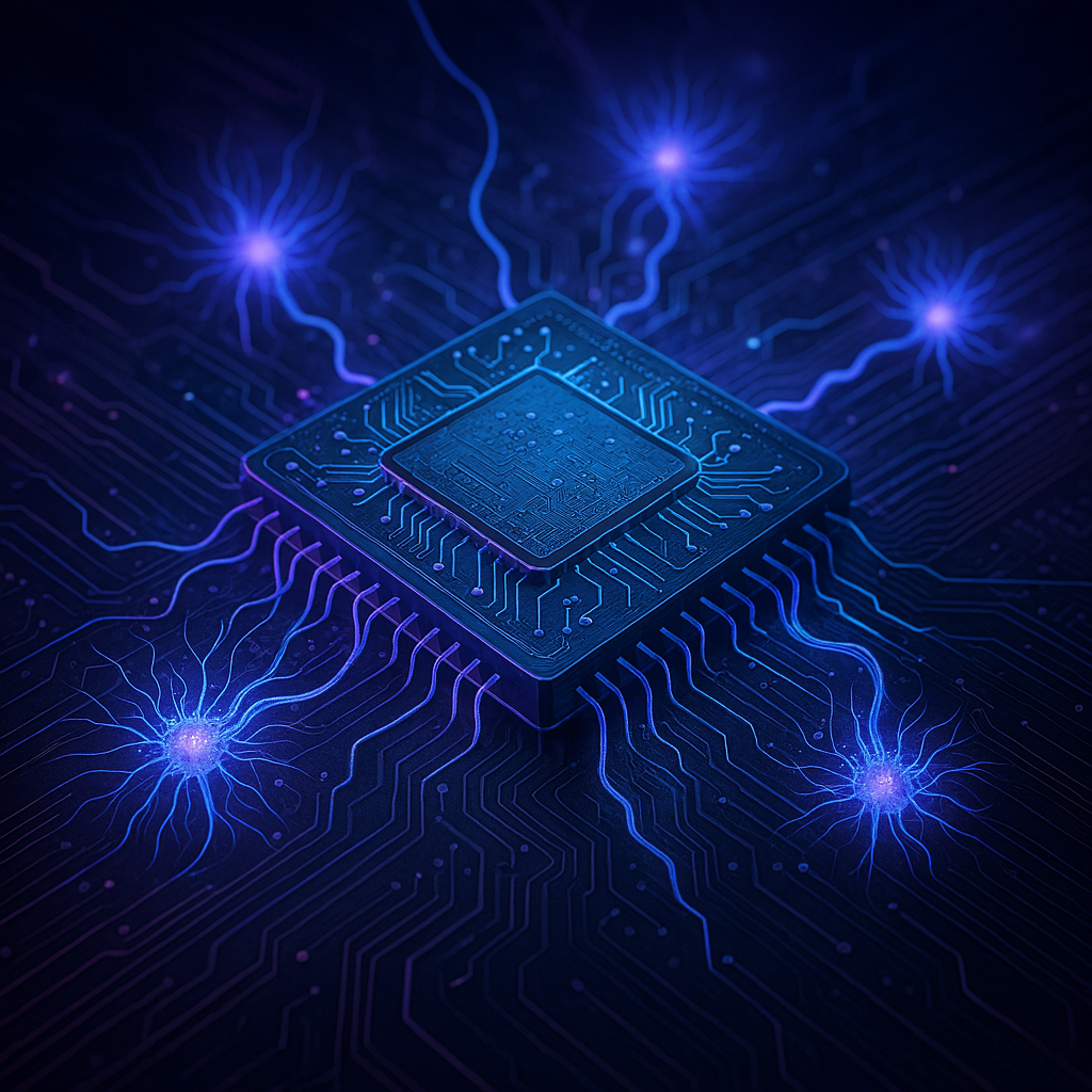 [Insert horizontal image here: a futuristic chip with glowing neural connections, cyberpunk style]